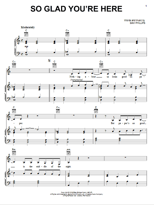 Sam Phillips "So Glad You're Here" Sheet Music