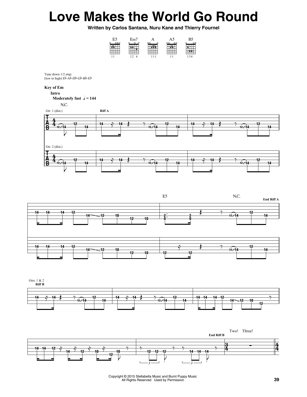 Santana Love Makes The World Go Round sheet music, chords, lyrics - Printable PDF for Guitar Tab