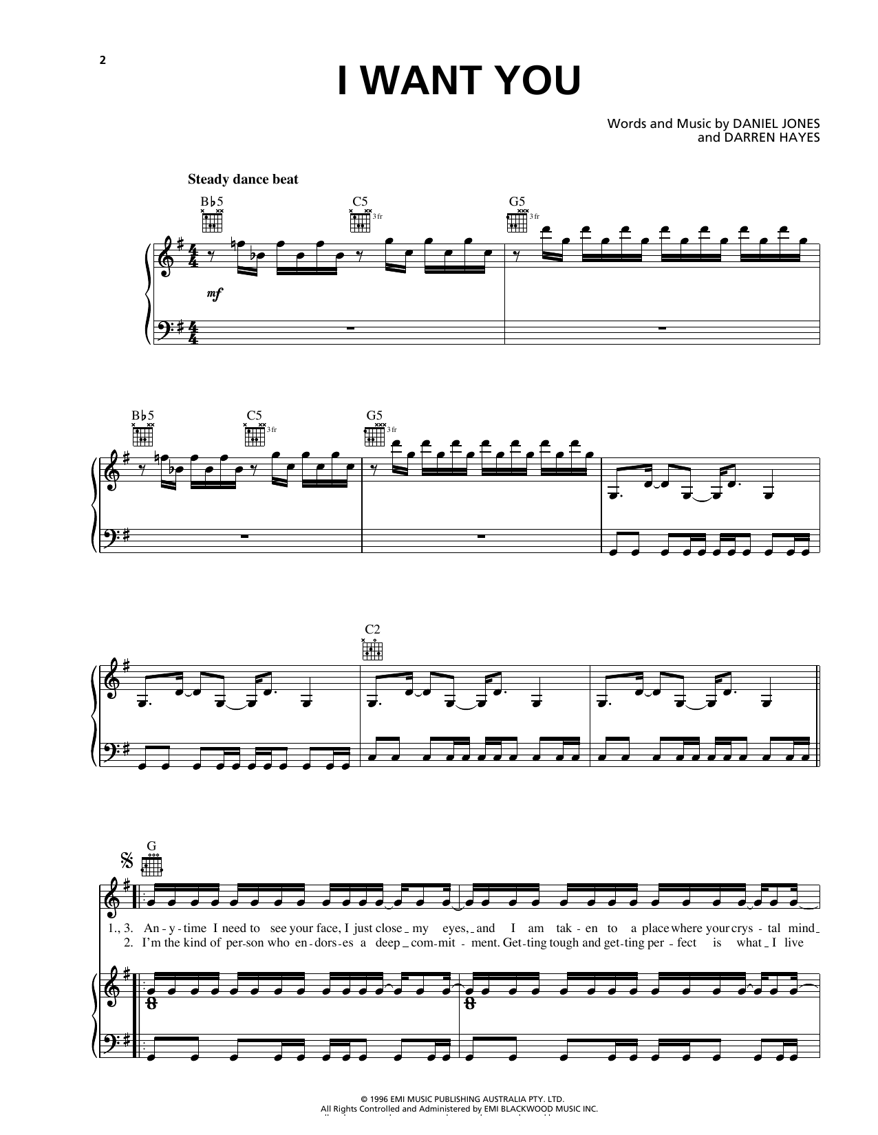 Savage Garden I Want You sheet music, chords, lyrics - Printable PDF for Piano, Vocal & Guitar (Right-Hand Melody)