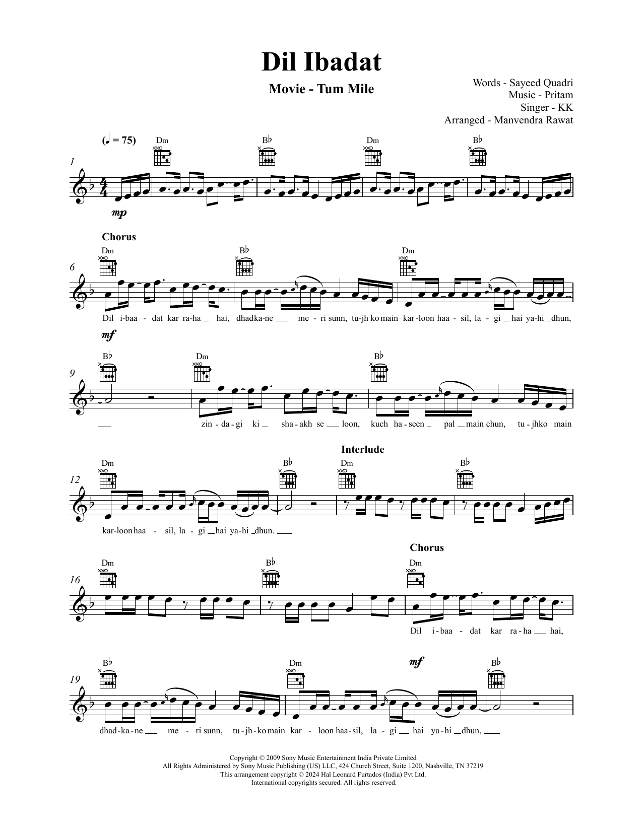 Sayeed Quadri Dil Ibaadat (from Tum Mile) sheet music, chords, lyrics - Printable PDF for Lead Sheet / Fake Book
