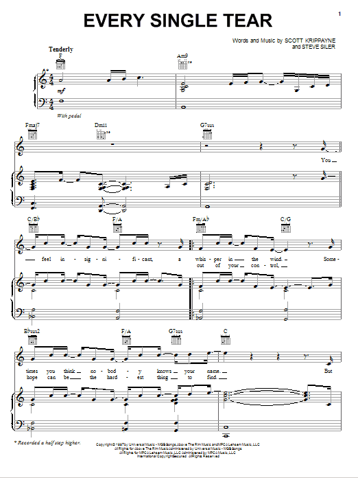 Scott Krippayne Every Single Tear sheet music, chords, lyrics - Printable PDF for Piano, Vocal & Guitar (Right-Hand Melody)