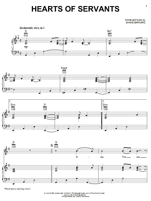 Shane & Shane Hearts Of Servants sheet music, chords, lyrics - Printable PDF for Piano, Vocal & Guitar (Right-Hand Melody)