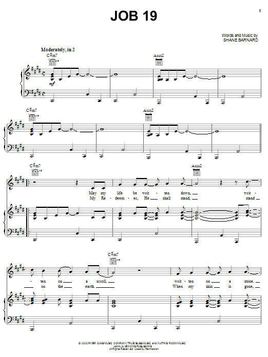 Shane & Shane Job 19 sheet music, chords, lyrics - Printable PDF for Piano, Vocal & Guitar (Right-Hand Melody)