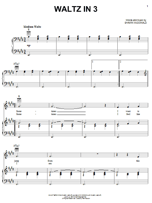 Shawn McDonald Waltz In 3 sheet music, chords, lyrics - Printable PDF for Piano, Vocal & Guitar (Right-Hand Melody)