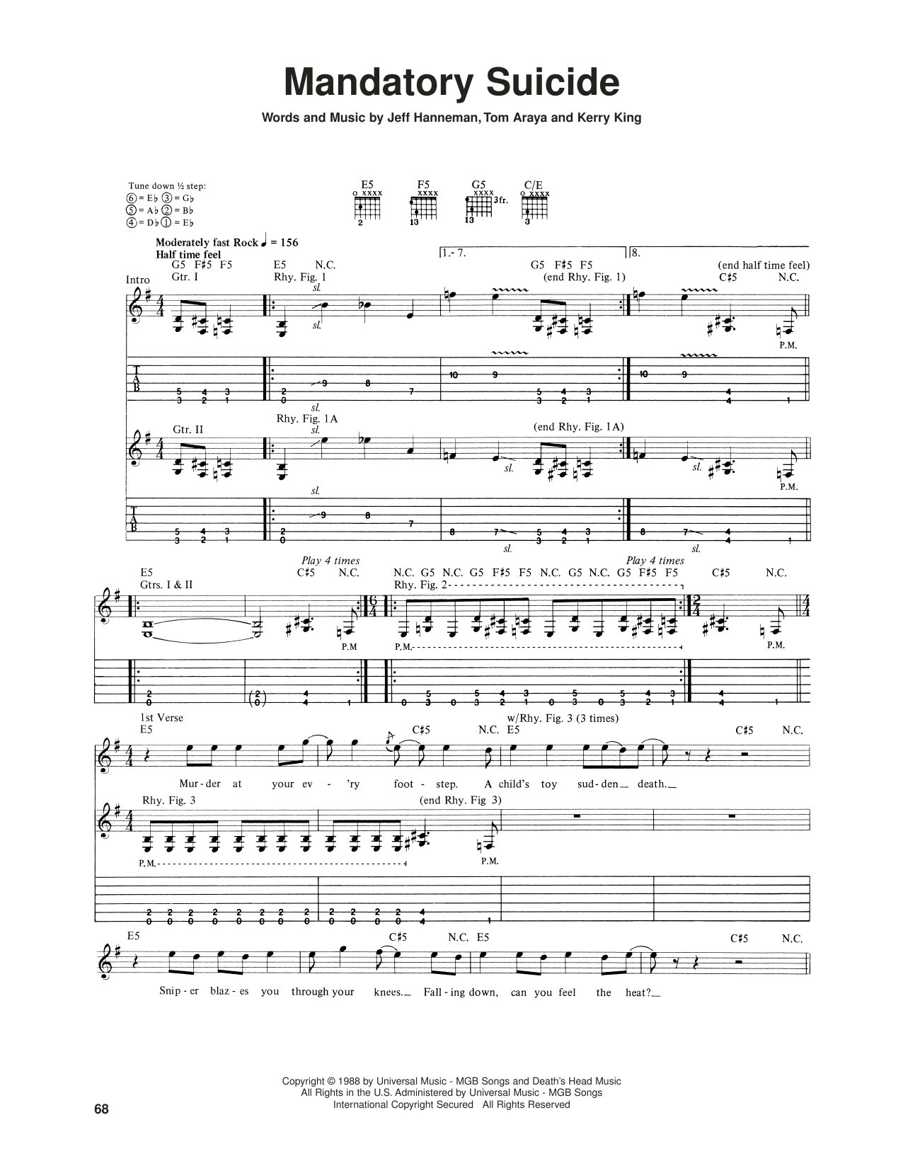 Slayer Mandatory Suicide sheet music, chords, lyrics - Printable PDF for Guitar Tab