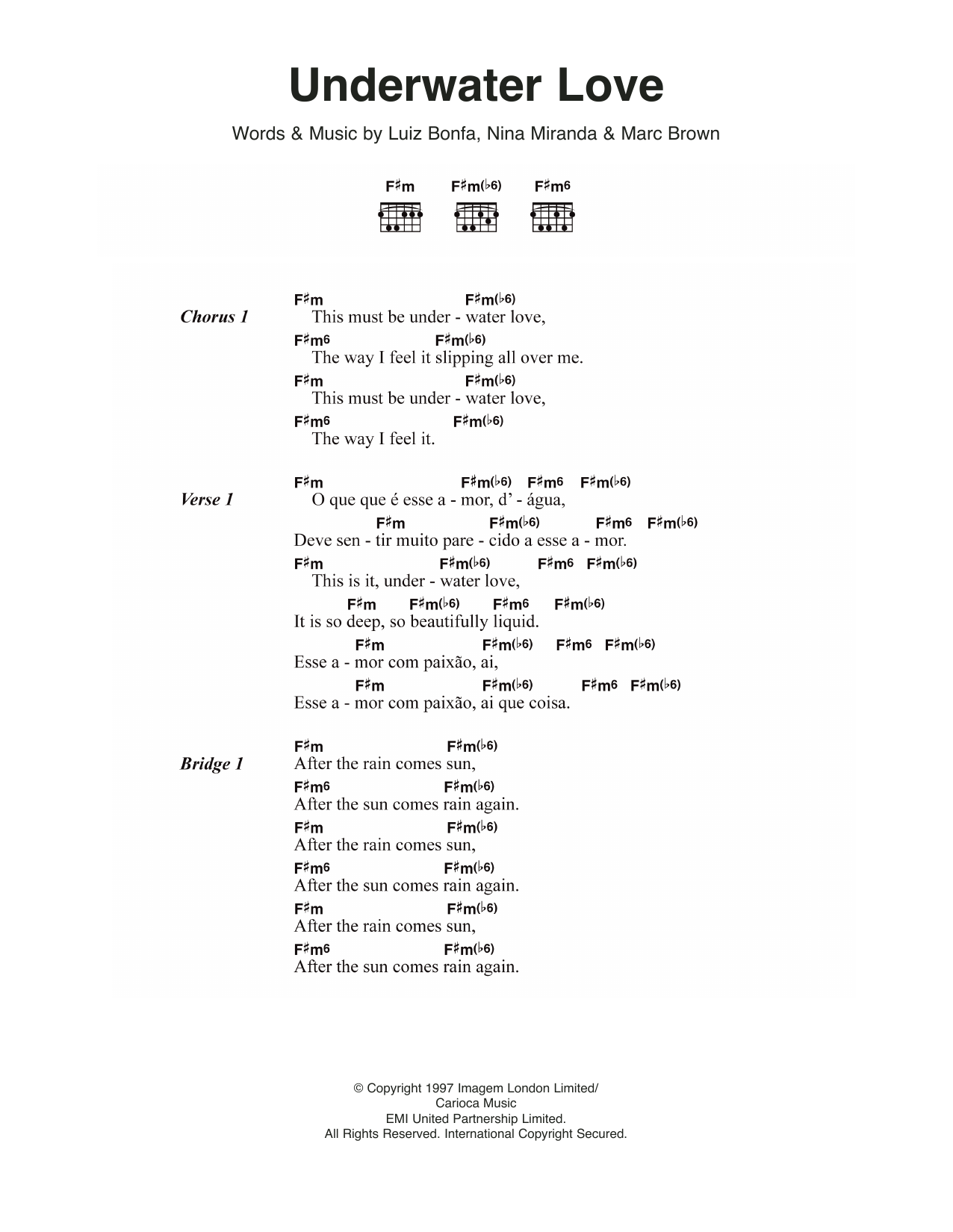 Smoke City Underwater Love sheet music, chords, lyrics - Printable PDF for Lyrics & Chords