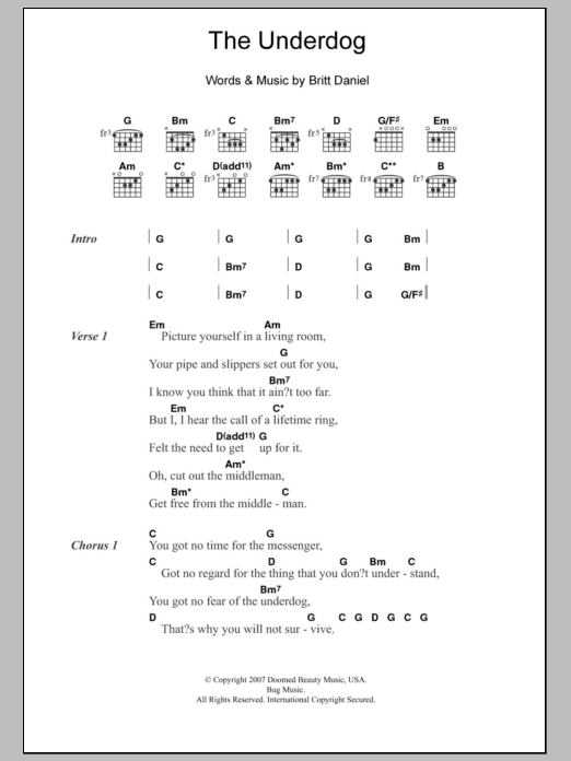 Spoon The Underdog sheet music, chords, lyrics - Printable PDF for Lyrics & Chords