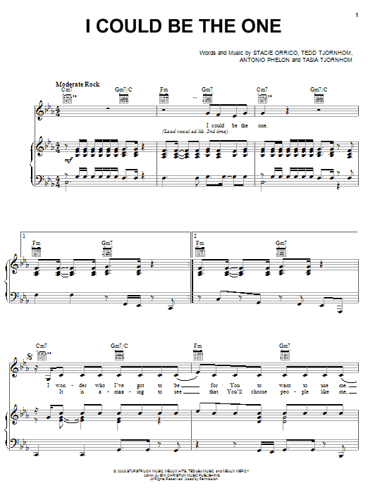 Stacie Orrico I Could Be The One sheet music, chords, lyrics - Printable PDF for Piano, Vocal & Guitar (Right-Hand Melody)