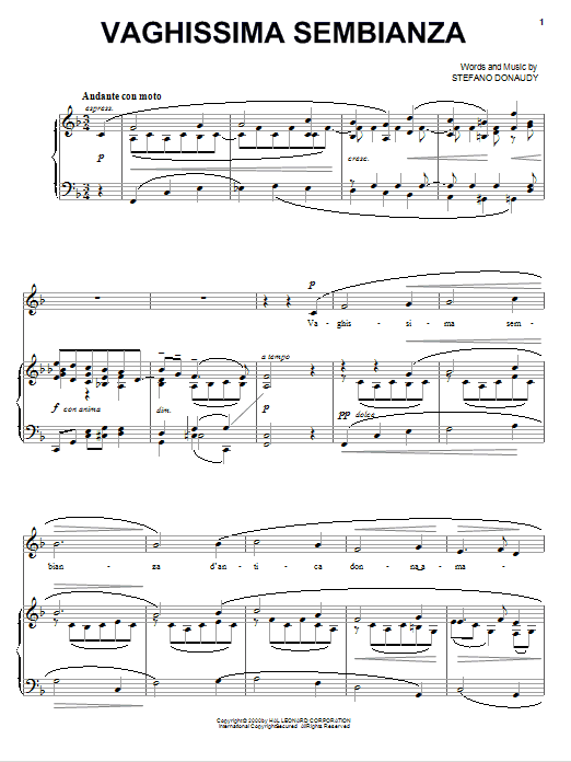 Download 4-Page Stefano Donaudy Vaghissima Sembianza sheet music | Printable PDF Digital Notes