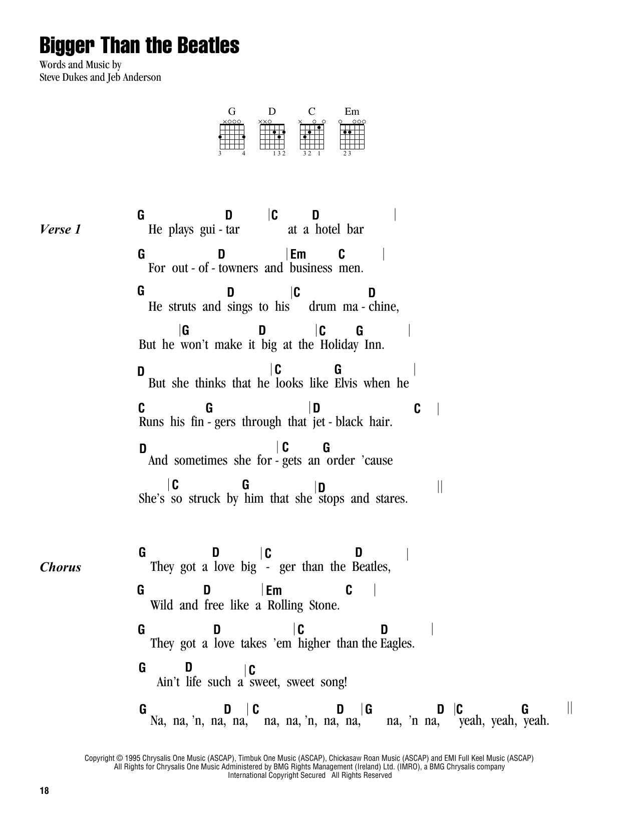 Steve Dukes Bigger Than The Beatles sheet music, chords, lyrics - Printable PDF for Lyrics & Chords