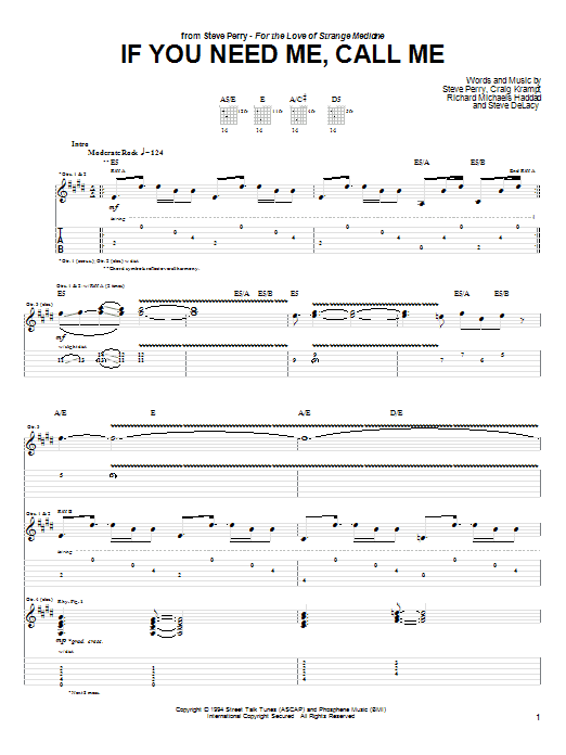 Steve Perry If You Need Me, Call Me sheet music, chords, lyrics - Printable PDF for Guitar Tab