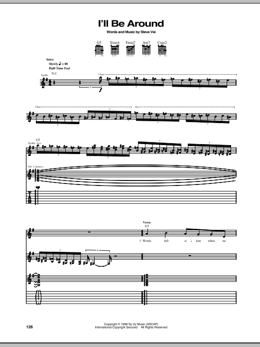Steve Vai I'll Be Around sheet music, chords, lyrics - Printable PDF for Guitar Tab