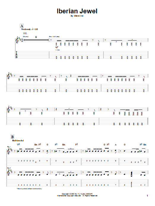 Steve Vai Iberian Jewel sheet music, chords, lyrics - Printable PDF for Guitar Tab