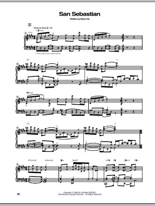 Download 2-Page Steve Vai San Sebastian sheet music | Printable PDF Digital Notes