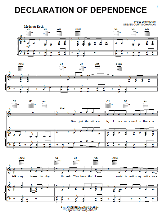 Steven Curtis Chapman Declaration Of Dependence sheet music, chords, lyrics - Printable PDF for Piano, Vocal & Guitar (Right-Hand Melody)