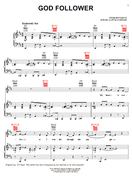 Steven Curtis Chapman God Follower sheet music, chords, lyrics - Printable PDF for Piano, Vocal & Guitar (Right-Hand Melody)
