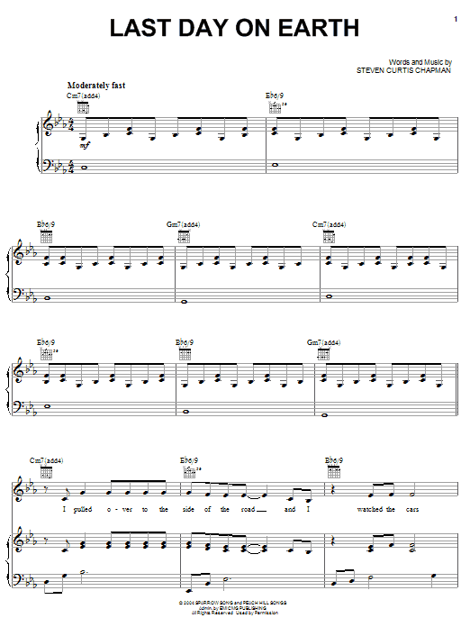 Steven Curtis Chapman Last Day On Earth sheet music, chords, lyrics - Printable PDF for Piano, Vocal & Guitar (Right-Hand Melody)