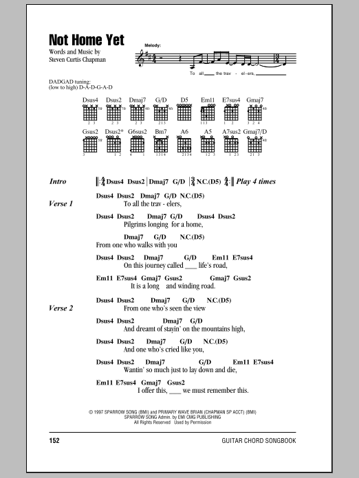 Steven Curtis Chapman Not Home Yet sheet music, chords, lyrics - Printable PDF for Lyrics & Chords