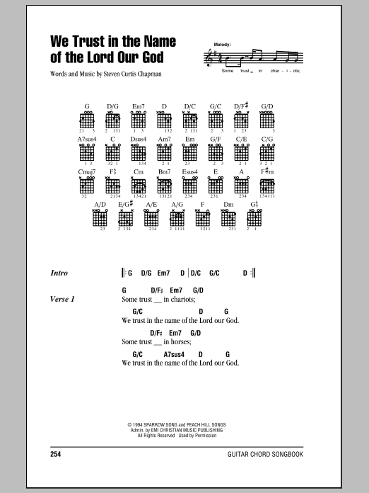 Steven Curtis Chapman We Trust In The Name Of The Lord Our God sheet music, chords, lyrics - Printable PDF for Lyrics & Chords