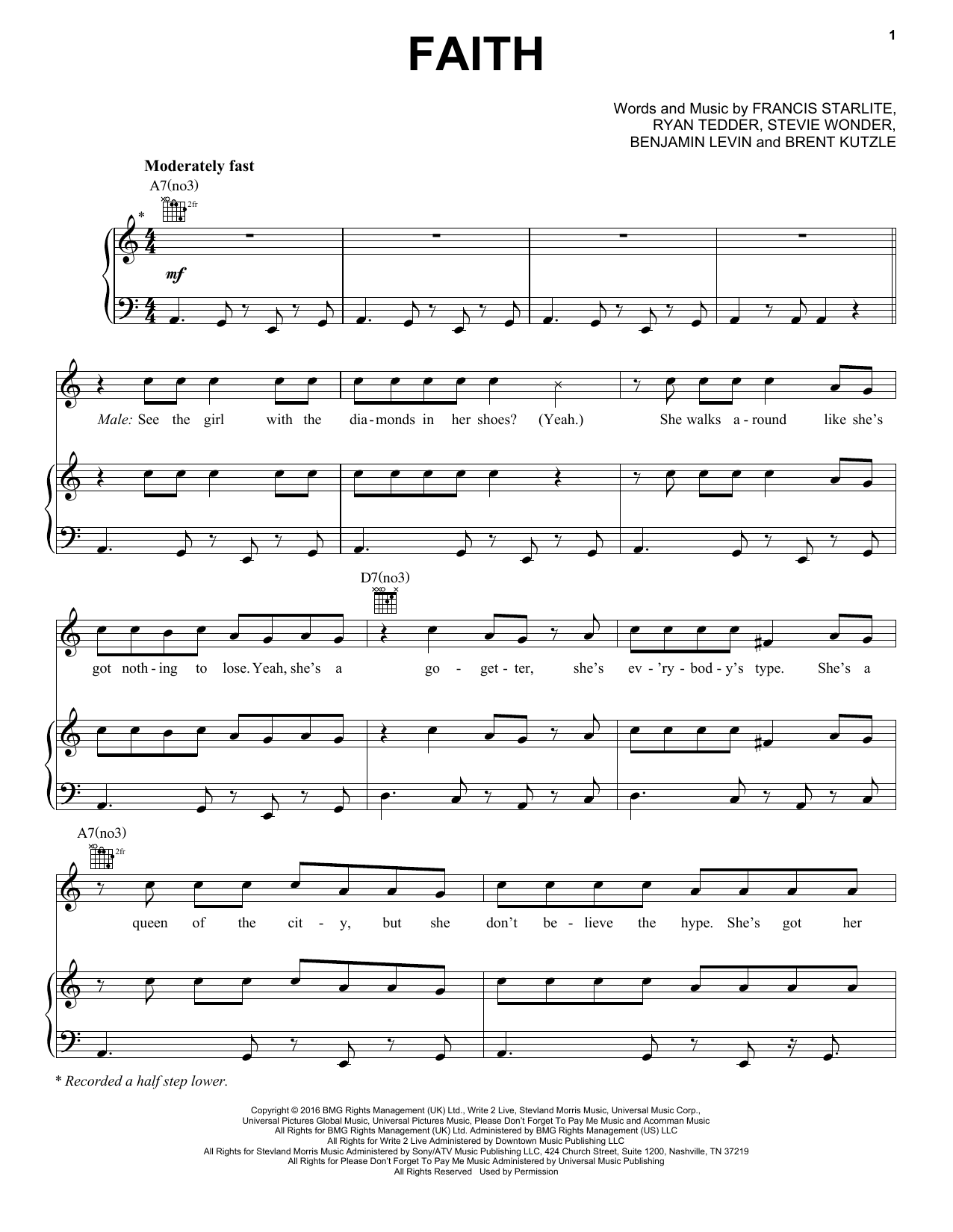Stevie Wonder Faith (feat. Ariana Grande) sheet music, chords, lyrics - Printable PDF for Piano, Vocal & Guitar (Right-Hand Melody)