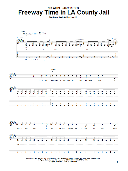 Sublime Freeway Time In LA County Jail sheet music, chords, lyrics - Printable PDF for Guitar Tab