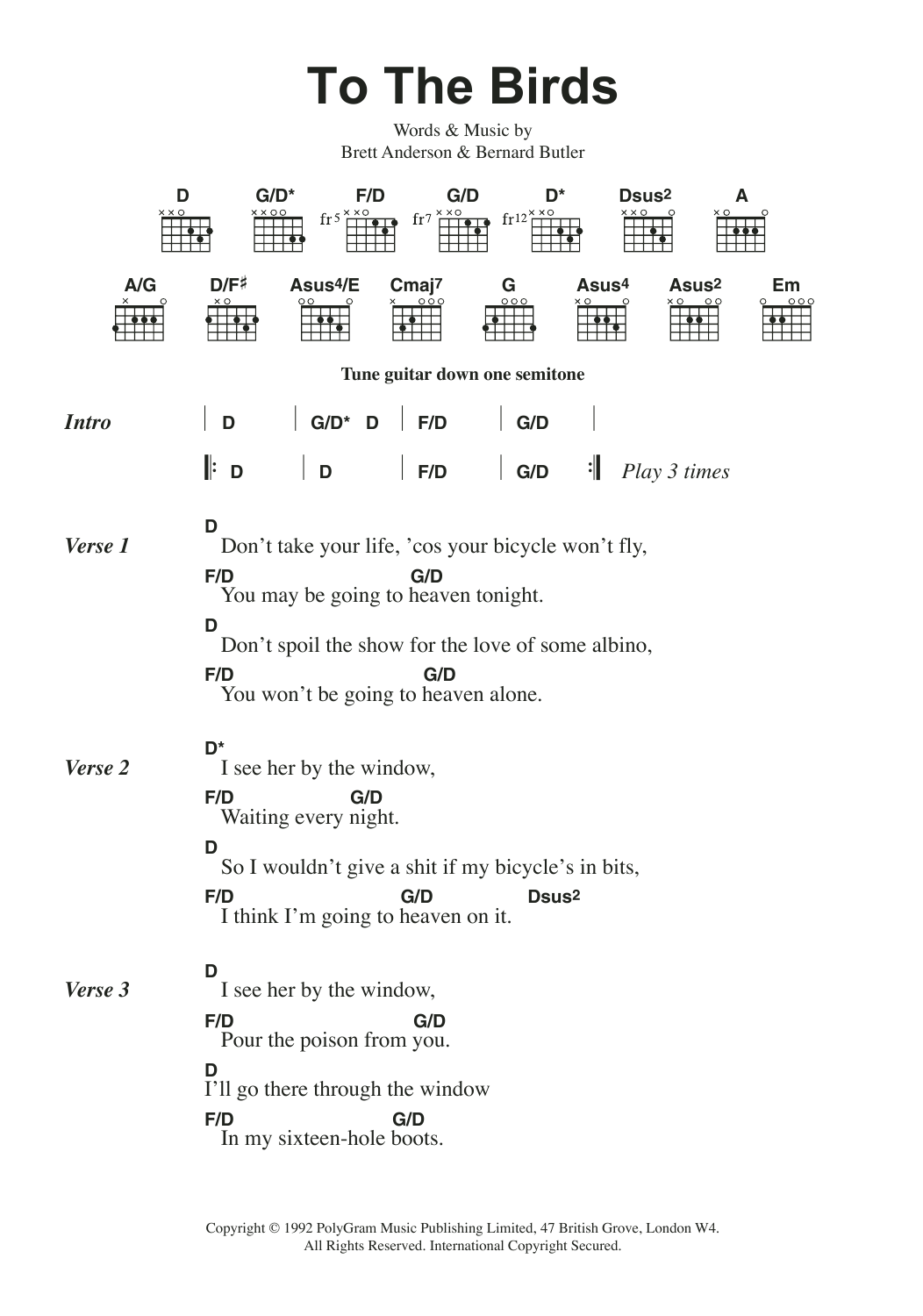 Suede To The Birds sheet music, chords, lyrics - Printable PDF for Lyrics & Chords