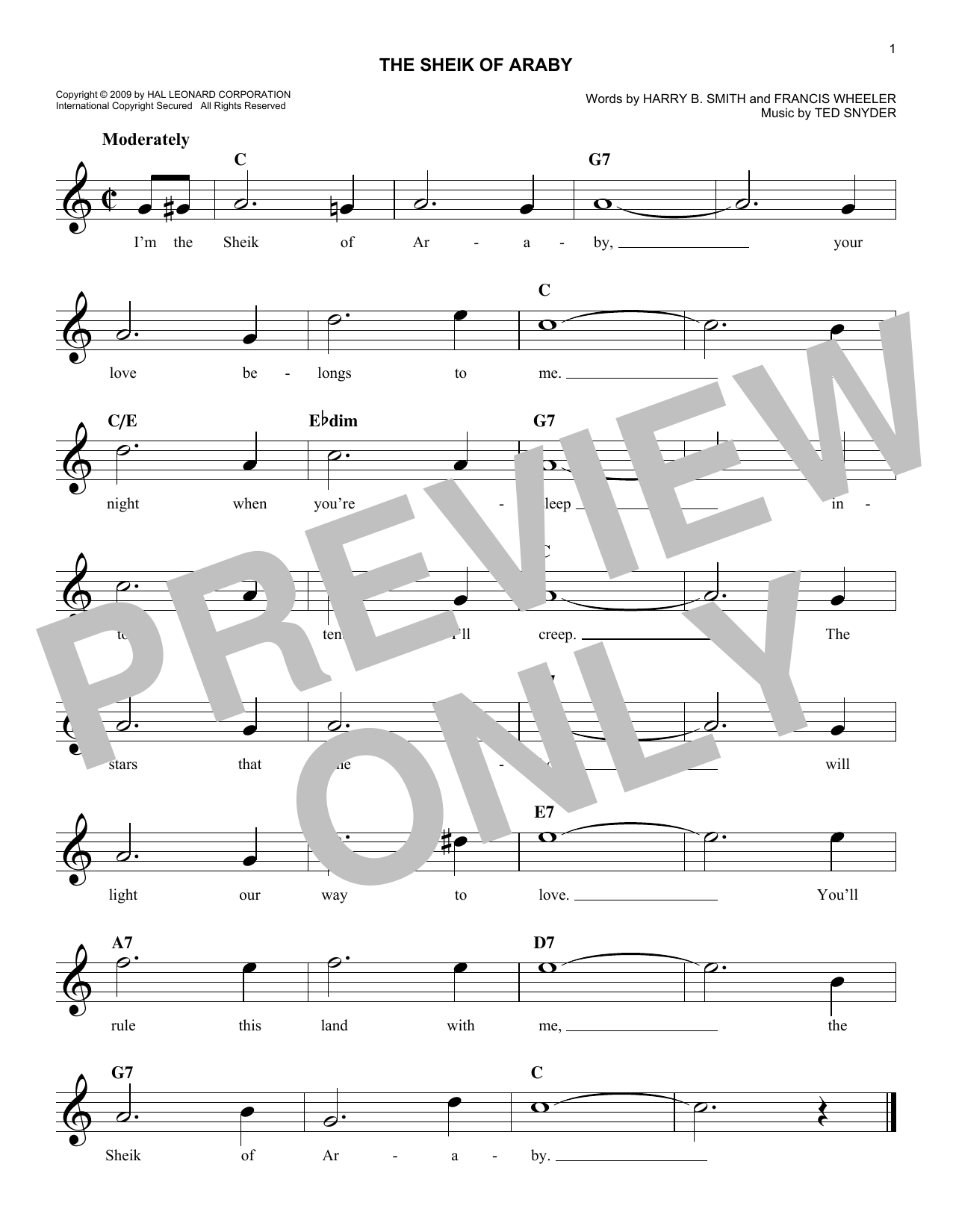 Ted Snyder The Sheik Of Araby sheet music, chords, lyrics - Printable PDF for Melody Line, Lyrics & Chords