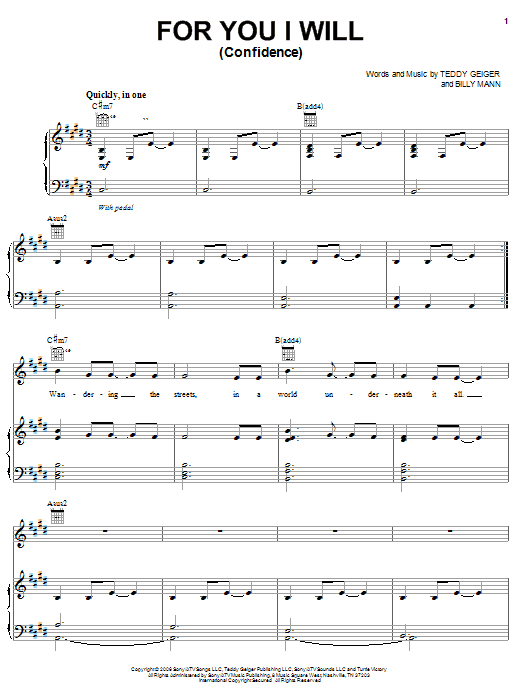 Teddy Geiger "For You I Will (Confidence)" Sheet Music
