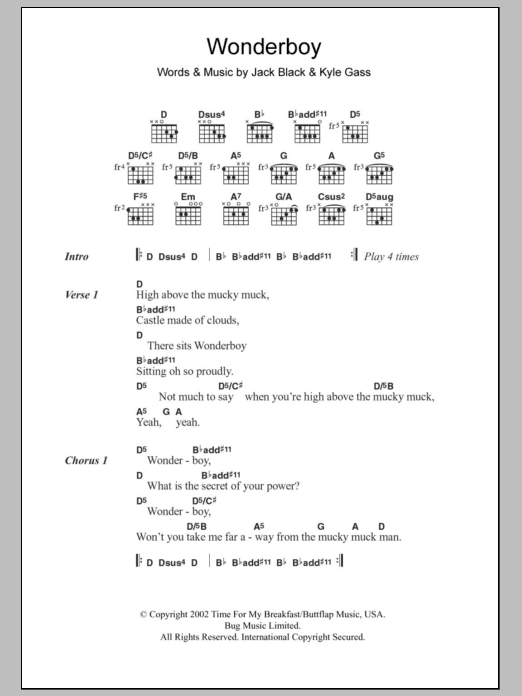 Tenacious D Wonderboy sheet music, chords, lyrics - Printable PDF for Lyrics & Chords