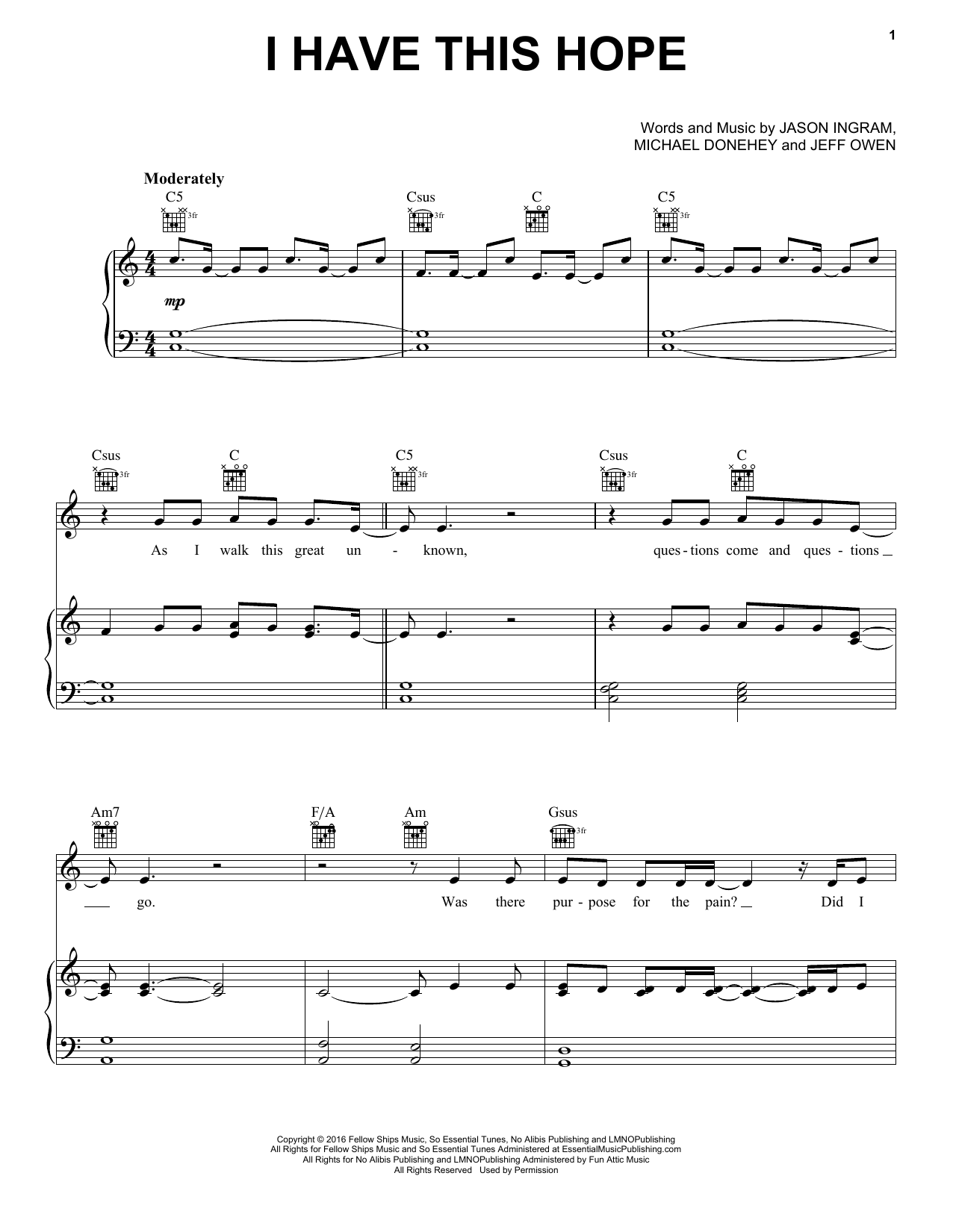 Tenth Avenue North "I Have This Hope" Sheet Music