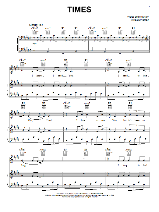 Tenth Avenue North Times sheet music, chords, lyrics - Printable PDF for Piano, Vocal & Guitar (Right-Hand Melody)