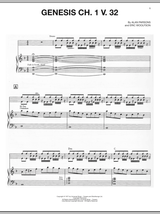 The Alan Parsons Project "Genesis Ch. 1 V. 32" Sheet Music