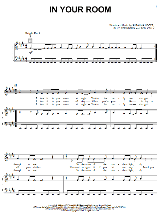 The Bangles "In Your Room" Sheet Music