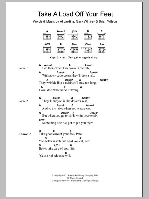 The Beach Boys Take A Load Off Your Feet sheet music, chords, lyrics - Printable PDF for Lyrics & Chords