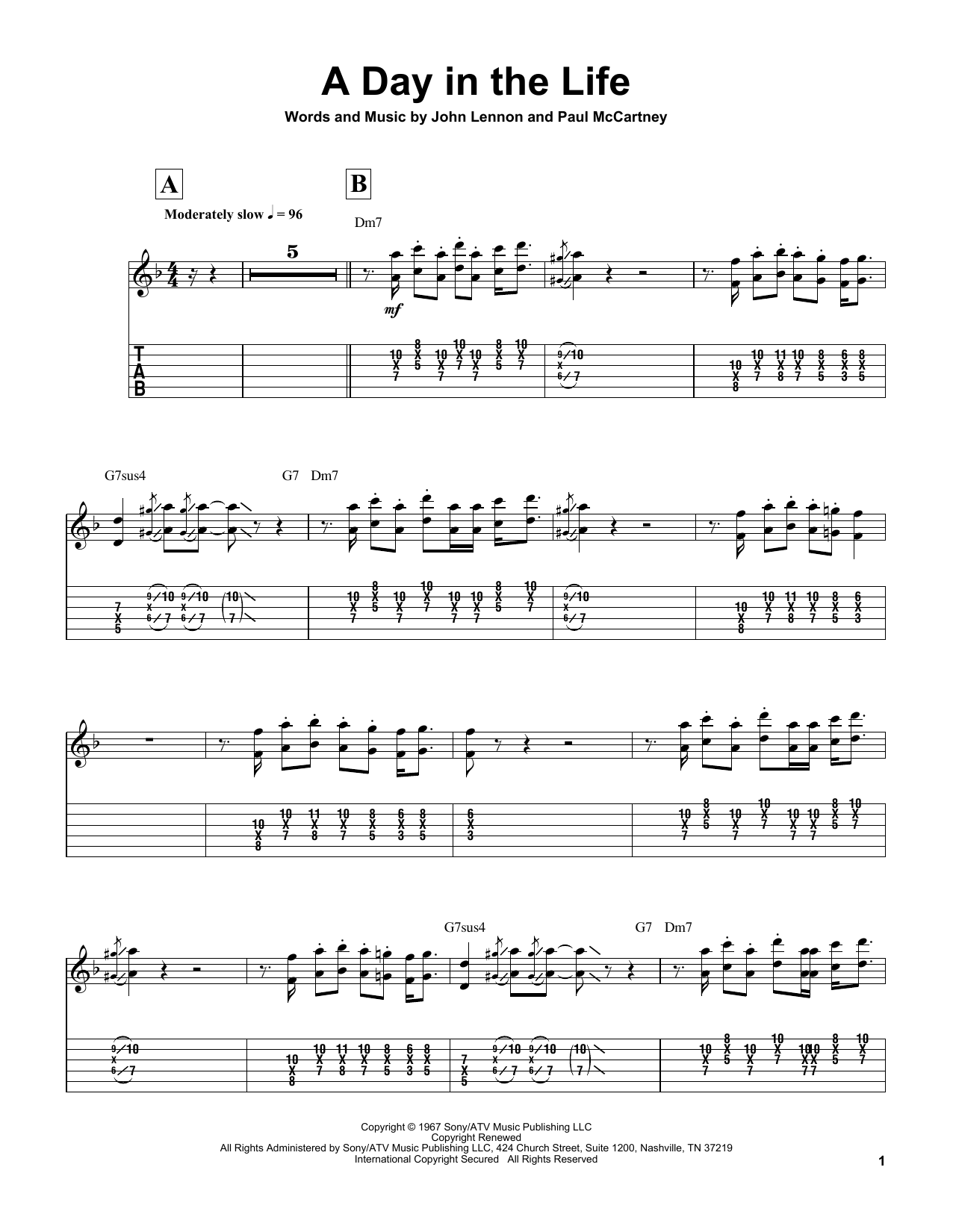 The Beatles A Day In The Life sheet music, chords, lyrics - Printable PDF for Guitar Tab