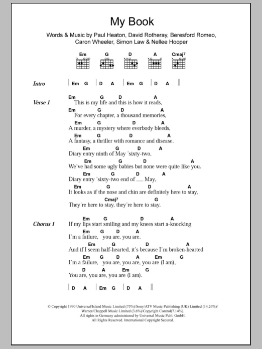 The Beautiful South My Book sheet music, chords, lyrics - Printable PDF for Lyrics & Chords
