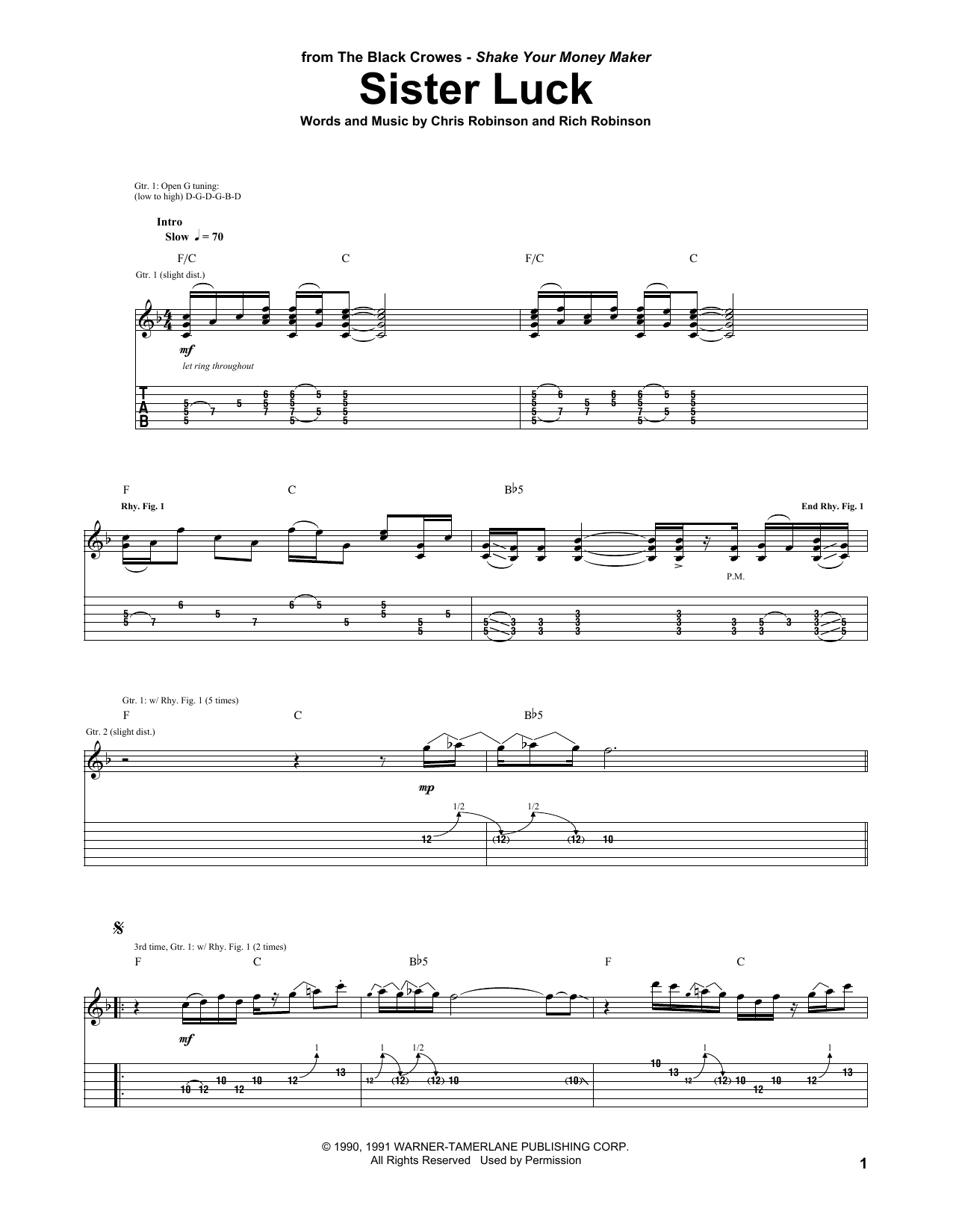 Download 8-Page The Black Crowes Sister Luck sheet music | Printable PDF Digital Notes