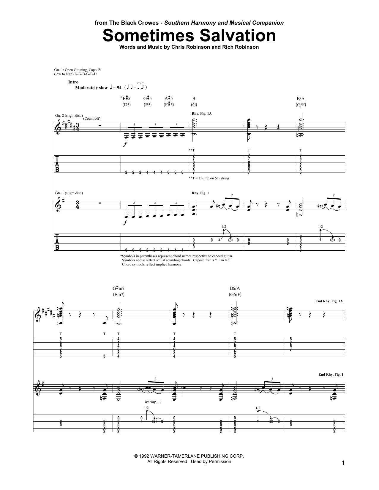 The Black Crowes Sometimes Salvation sheet music, chords, lyrics - Printable PDF for Guitar Tab
