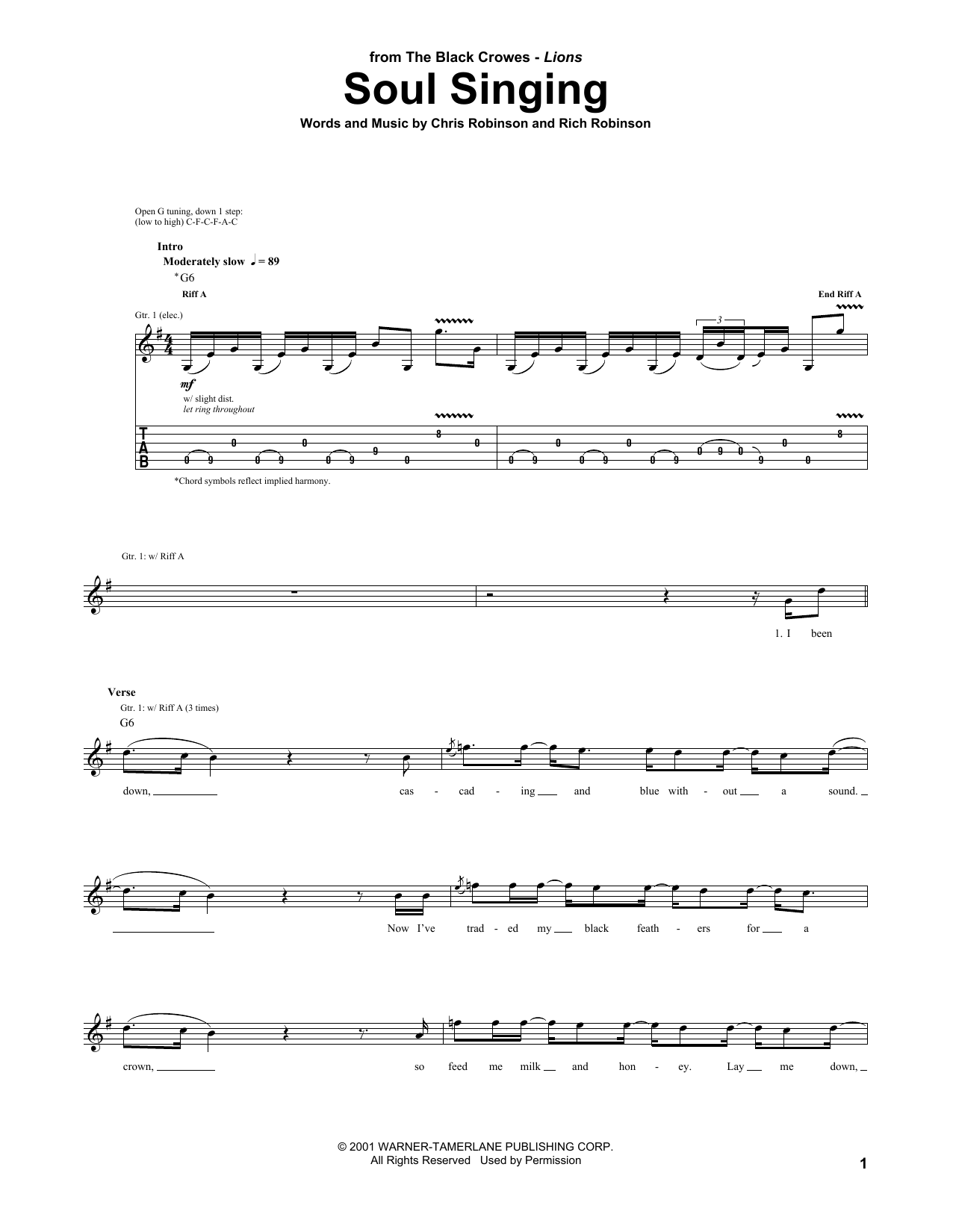 The Black Crowes Soul Singing sheet music, chords, lyrics - Printable PDF for Guitar Tab