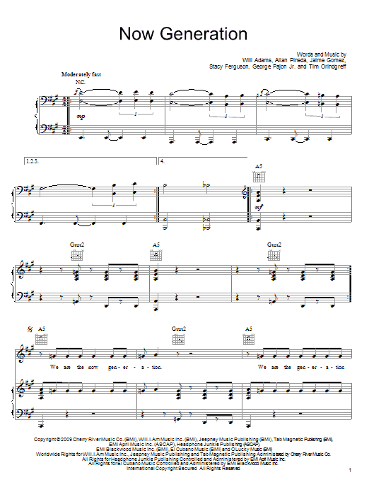 Download 9-Page The Black Eyed Peas Now Generation sheet music | Printable PDF Digital Notes