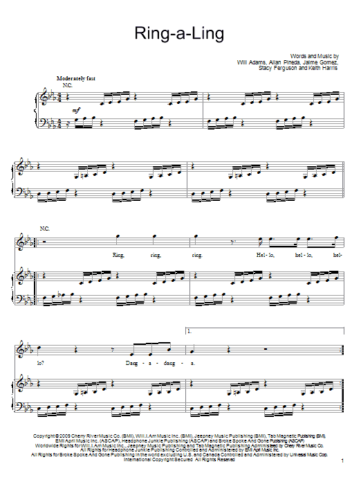 The Black Eyed Peas Ring-A-Ling sheet music, chords, lyrics - Printable PDF for Piano, Vocal & Guitar (Right-Hand Melody)