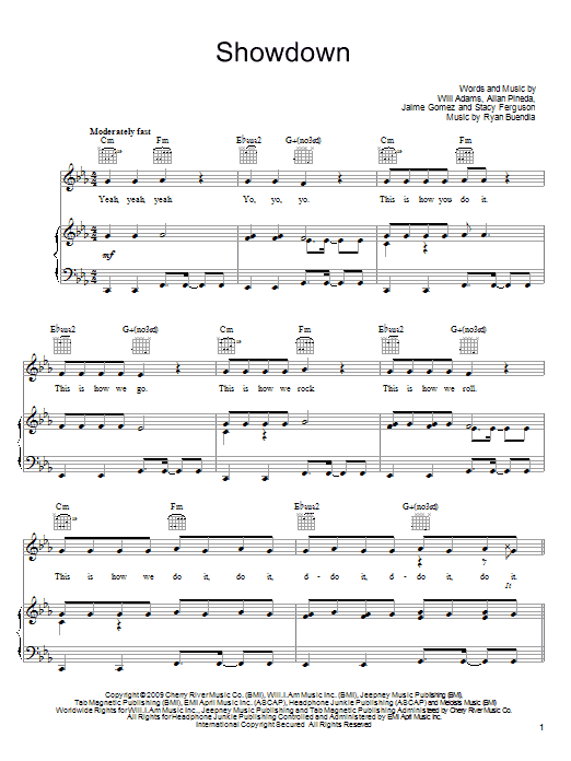 The Black Eyed Peas Showdown sheet music, chords, lyrics - Printable PDF for Piano, Vocal & Guitar (Right-Hand Melody)