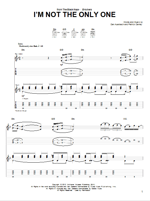 The Black Keys I'm Not The Only One sheet music, chords, lyrics - Printable PDF for Guitar Tab