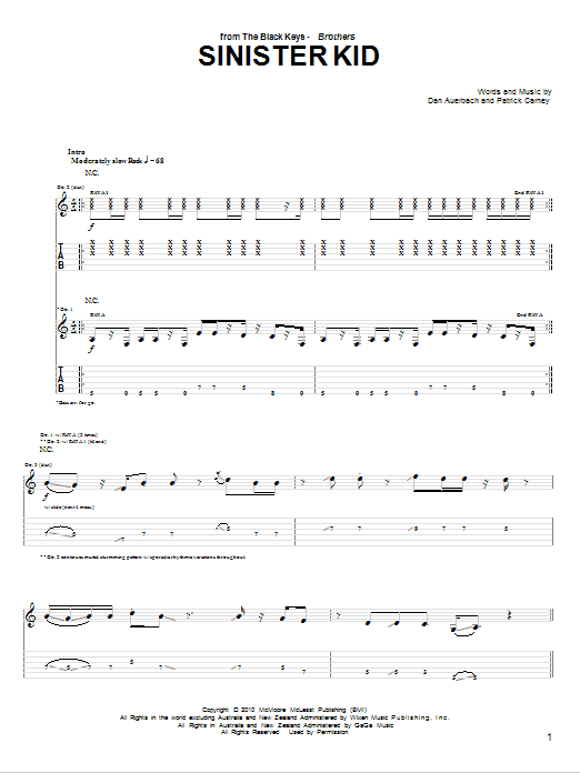 The Black Keys Sinister Kid sheet music, chords, lyrics - Printable PDF for Guitar Tab