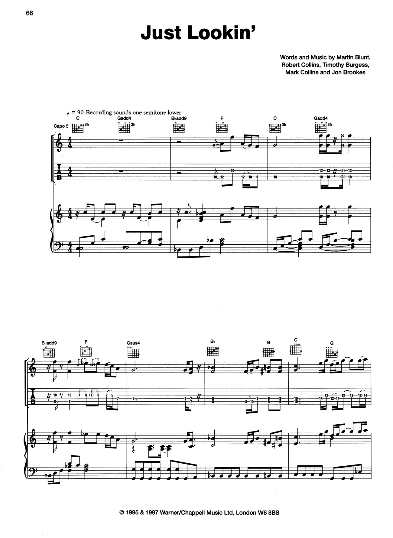 The Charlatans Just Lookin' sheet music, chords, lyrics - Printable PDF for Piano, Vocal & Guitar (Right-Hand Melody)