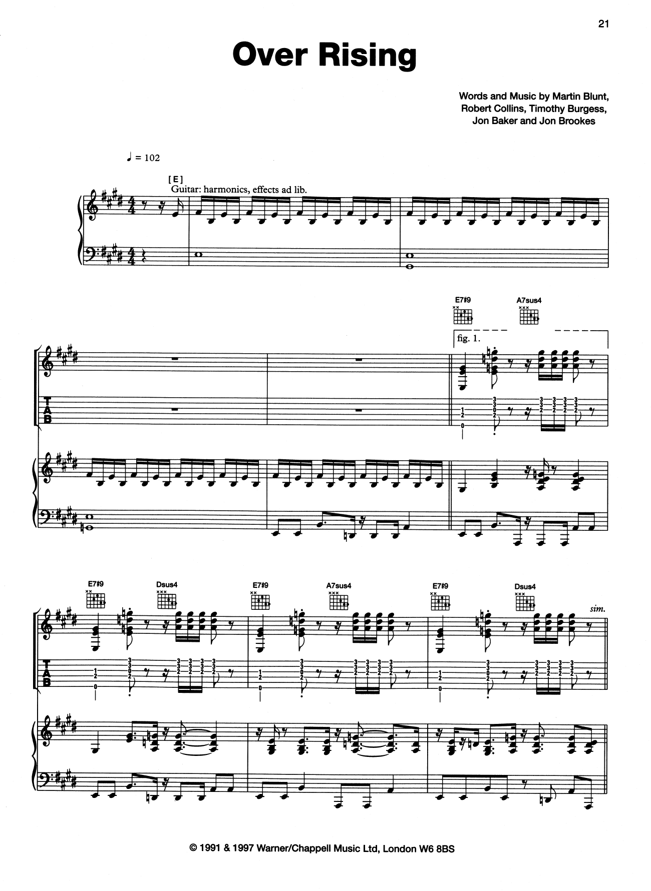 The Charlatans Over Rising sheet music, chords, lyrics - Printable PDF for Piano, Vocal & Guitar (Right-Hand Melody)