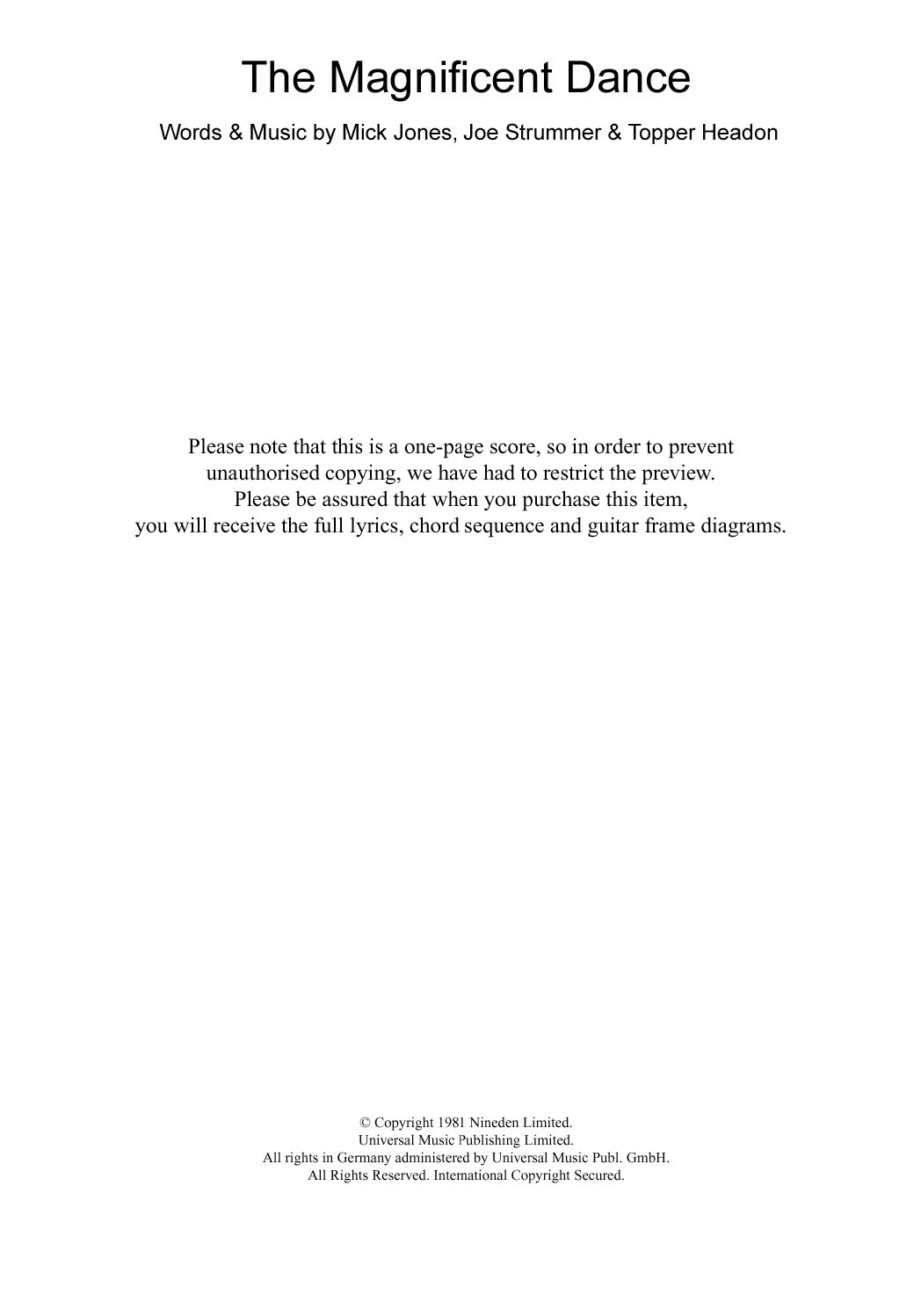 The Clash The Magnificent Dance sheet music, chords, lyrics - Printable PDF for Lyrics & Chords