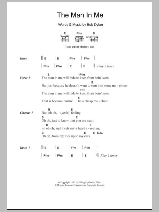 The Clash The Man In Me sheet music, chords, lyrics - Printable PDF for Lyrics & Chords