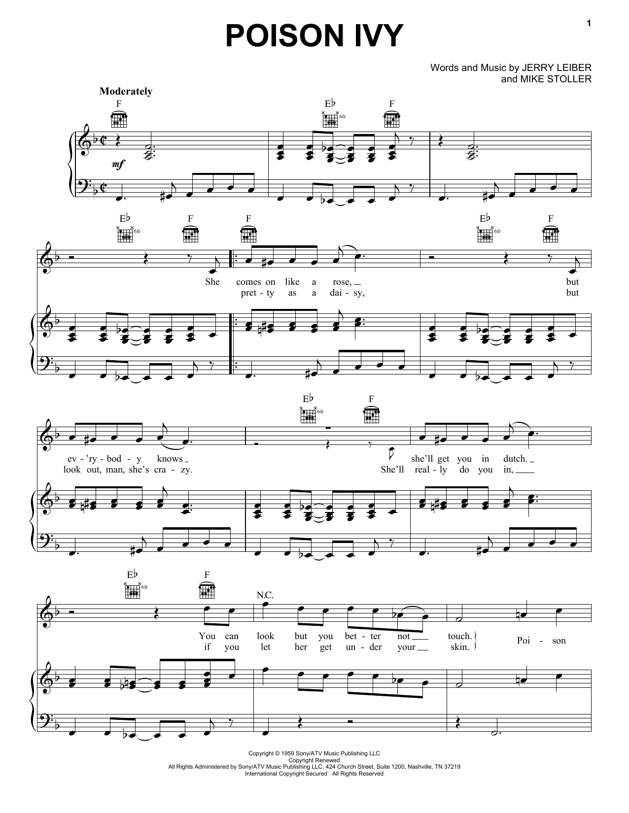 The Coasters Poison Ivy sheet music, chords, lyrics - Printable PDF for Piano, Vocal & Guitar (Right-Hand Melody)