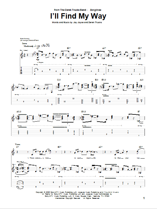The Derek Trucks Band I'll Find My Way sheet music, chords, lyrics - Printable PDF for Guitar Tab